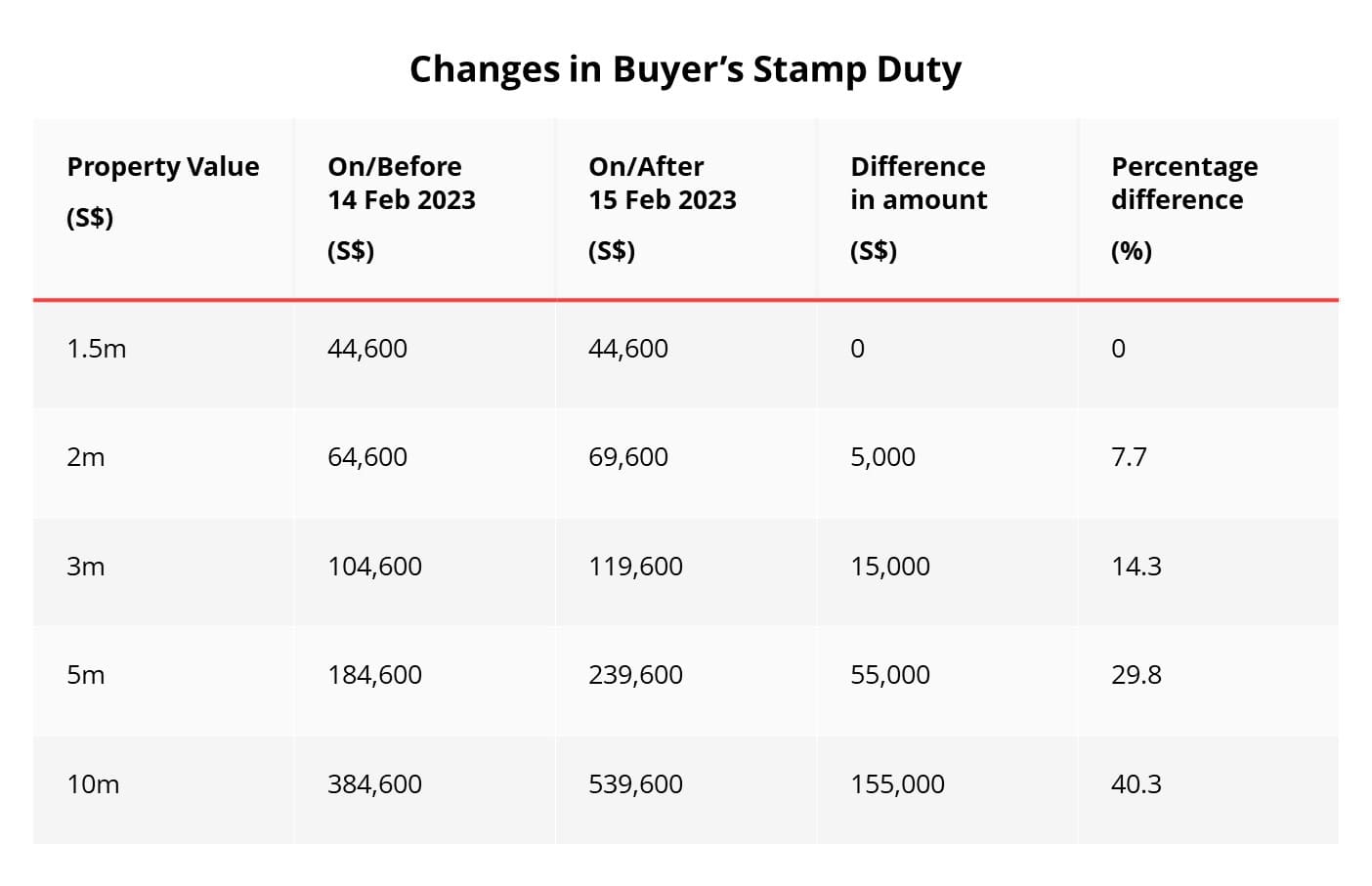 From 15 Feb 2023, the portion of the value of residential property in excess of $1.5 million and up to $3 million will be taxed at 5%, while that in excess of $3 million will be taxed at 6%, up from 4% previously.